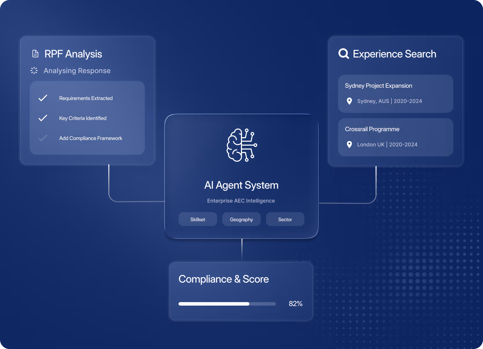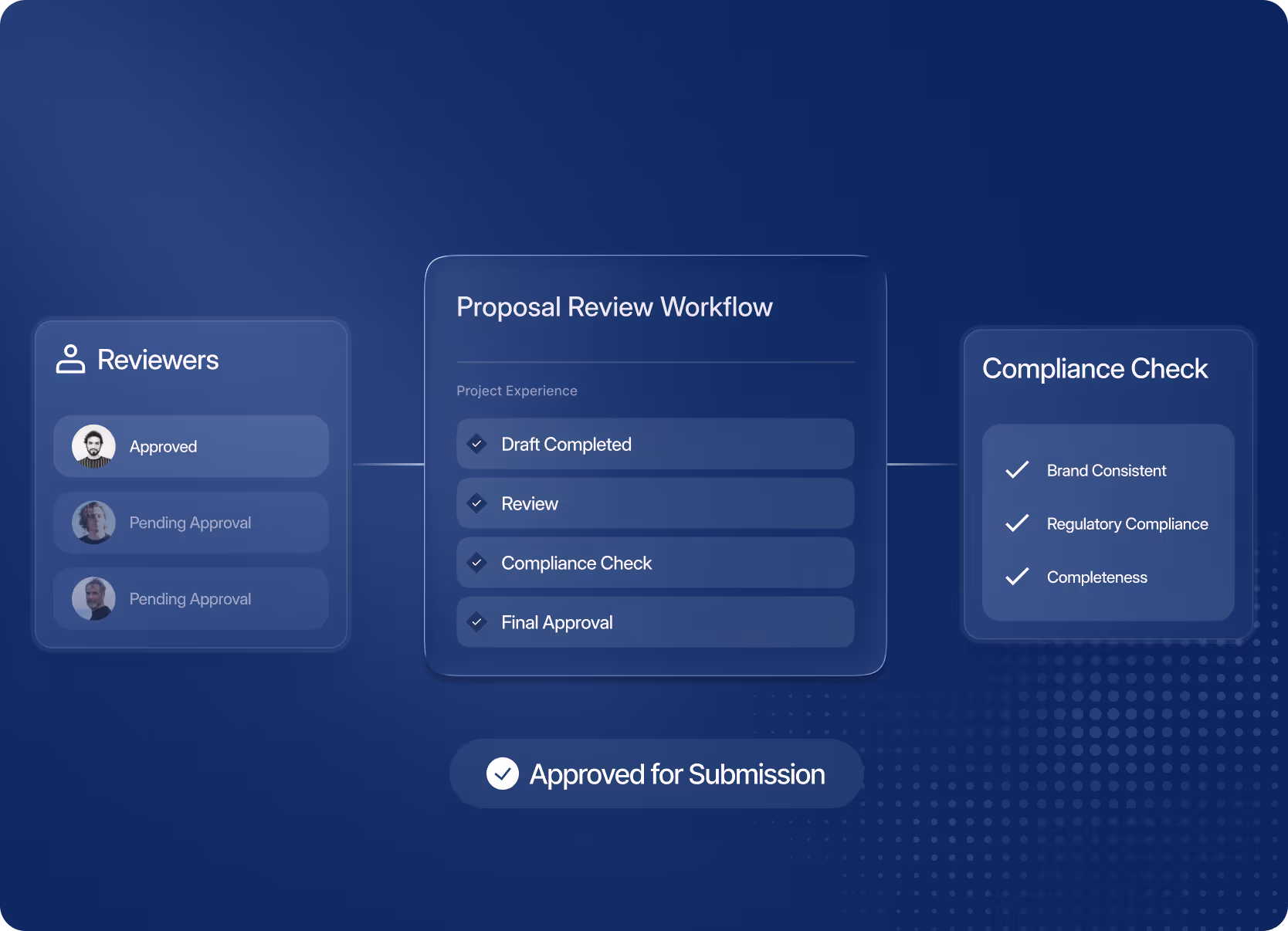 Automated agents pull and populate bios, project sheets, and methodology content with precision. Consistent quality across every submission.