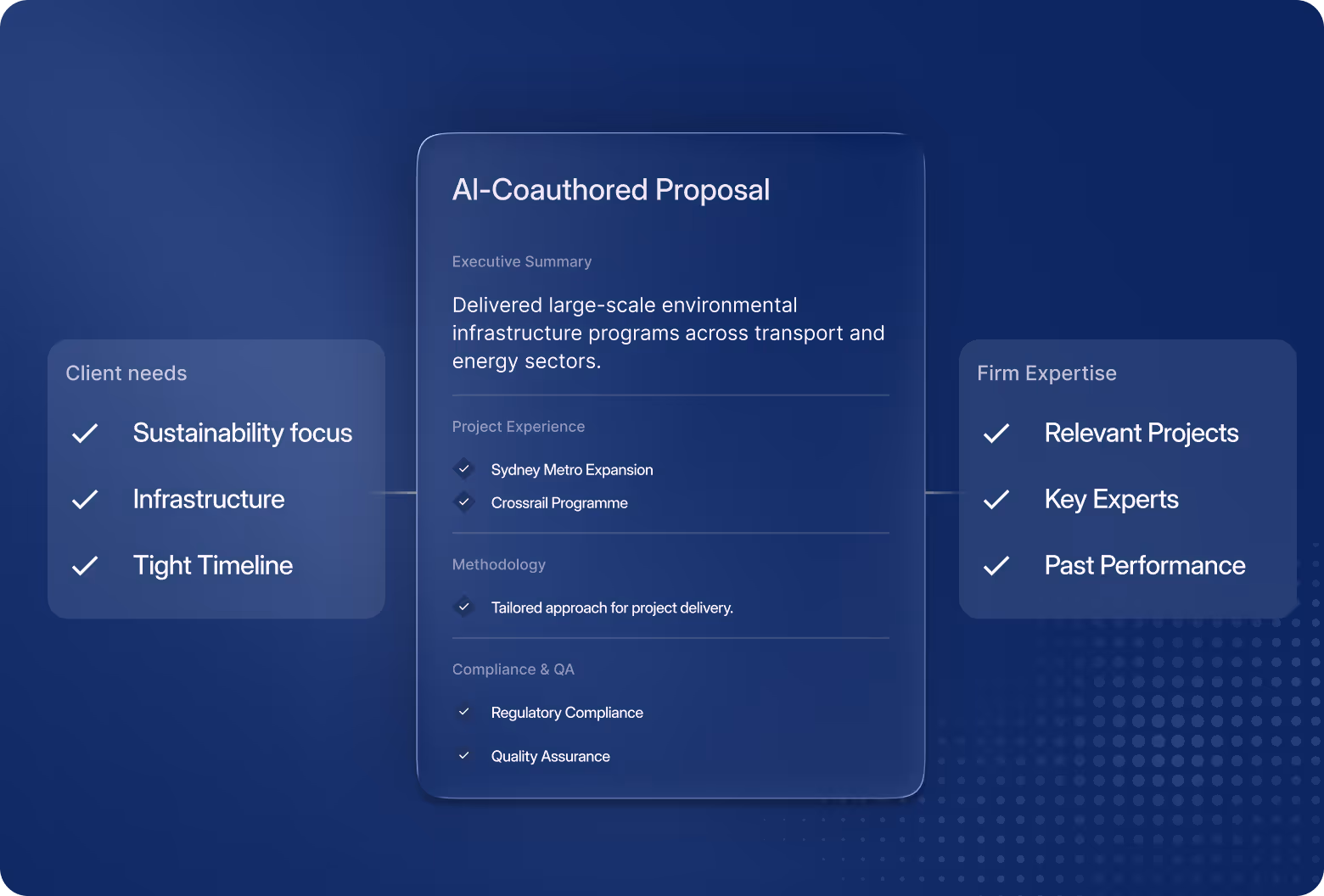 Use AI co-authoring to produce proposals that are on-brand, complete, and strategically positioned in a fraction of the time.